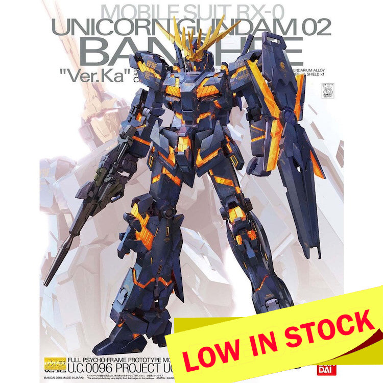 The Banshee from "Gundam Unicorn" re-appears as a Ver. Ka model kit! This version replicates its appearance in the novel before being adapted into an animated work where it was a black and gold colored Gundam Unicorn with a different head crest. Can transform between Unicorn and NT-D Modes and includes Beam Magnum, 4 Beam Sabers, transforming shield, and bazooka. This special release comes with a large sheet of gold colored water slide decals. Runner x 22, Foil Sticker, Water Decal, instruction Manual