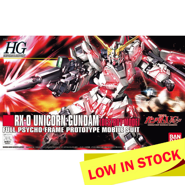 The titular mobile suit from the OVA series “Gundam Unicorn,” as a 1/144 model kit. Features translucent pink/red plastic to replicate its psyco frame and is equipped with beam magnum and shield. Impressive articulation at a small scale, it can be put into iconic poses from the anime.