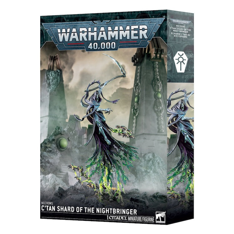 The Nightbringer was once death incarnate – a sadistic god with the power to unmake the stars and a hunger for the life of the galaxy. Like its fellow C’tan, it was shattered by the Necrons, and its insane fragments have ever since been enslaved by those it once ruled. A single shard of the Nightbringer can destroy entire armies. They extrude scythe‑shaped blades from their necrodermis, using them to cull their enemies with great sweeps of entropic unmaking. Their very gaze, meanwhile, is death itself, capable of leeching the essential animus from their victims.