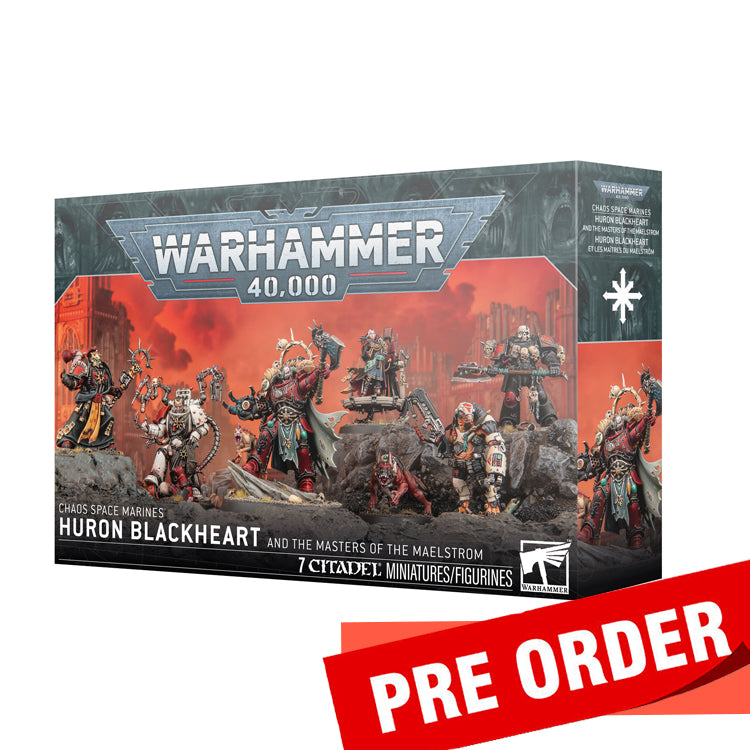 This multipart plastic kit builds Huron Blackheart and his closest lieutenants for your Chaos Space Marines armies in games of Warhammer 40,000. Huron is resplendent in his modified armour, wielding the legendary Tyrant's Claw, holding a deadly power axe aloft, and accompanied by the Hamadrya. At his side fight his most loyal warriors. Garreon the Corpsemaster is the Lord-Apothecary of the Red Corsairs, and Katar Garrix is the grim Headsman. Garlon Souleater is the Tyrant's most powerful sorcerer, while Captain Sargotta is the commander of his flagship. The Enforcer is a single-minded stalker who fights alongside her pet, Plunder. They each bring a set of individual abilities to your force, ensuring that you’ll maintain control of the Maelstrom, while the characterful miniatures make for an impressive painting project.