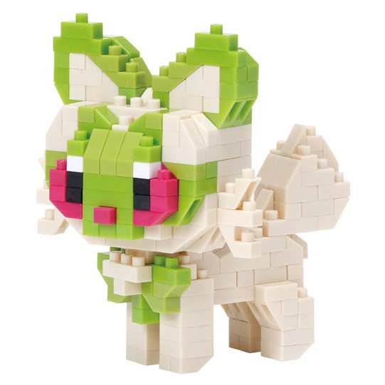 Sprigatito from Nanoblock's Pokémon RS Series stands approximately 2.67" tall and has 280 pieces. Difficulty level is 2. This kit features all the details one would expect. Please note that this is a new series of nanoblock denoting the new price-point. The Pokémon Series RS (Round Style) features Pokémon characters made with larger builds and now include rounded style pieces (to replicate newer 3D style games) whereas the standard Pokémon series does not.