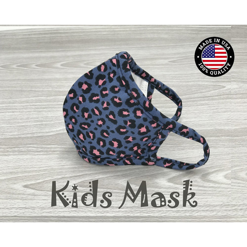 Washable Cotton Face Mask Kids size - Leopard Blue