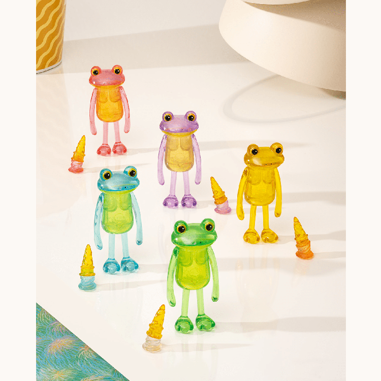 Qualia’s new blind box- Ice Cream Drop Frog Blind box. The frog has a sad face after dropping yummy ice cream. Oh nooo! This miniature frog comes in beautiful see-through pastel color, Coming in 5 variations and one secret with secret desert and standing at about 2″ tall, these figurines are the perfect touch to spruce up your office desk, bookshelf or you just want a cute companion to keep in your pocket. They are a fun way to decorate your home and liven up your social network feed!