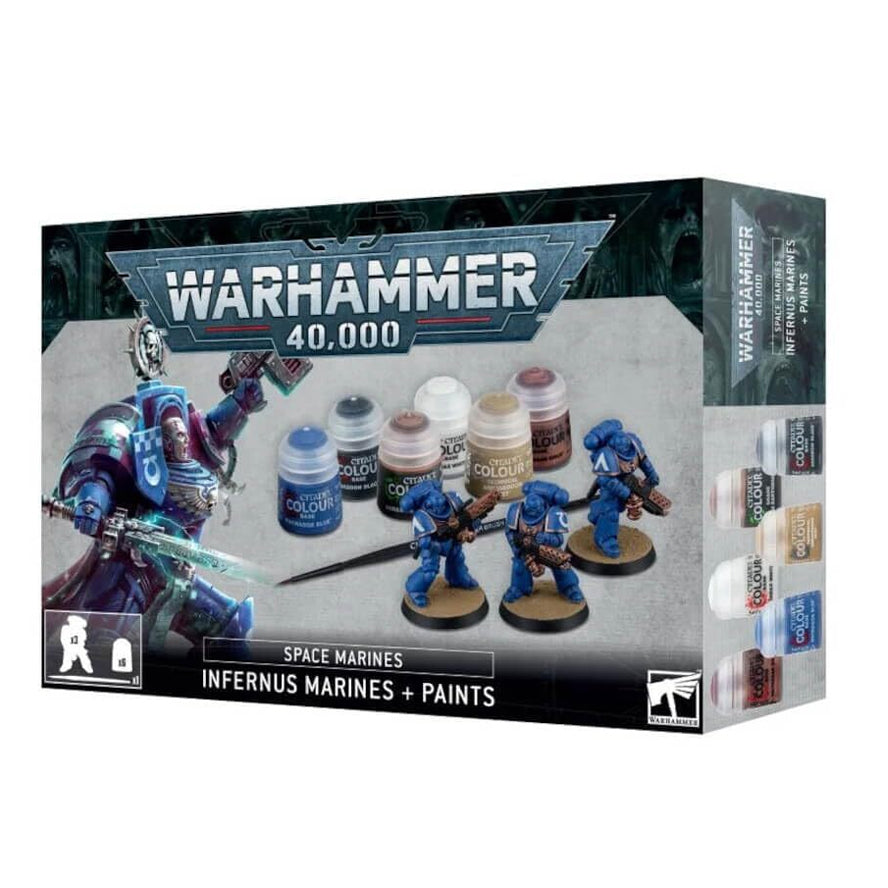 This box is the perfect way to start your collection of Primaris Space Marines. You’ll get three plastic Infernus Marines, each with a distinct pose, plus all the paints you need to prepare them for battle and a paintbrush to get you started. These models are push-fit, requiring only clippers to assemble – no glue, no mess.