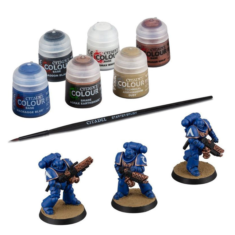 The six Citadel Colour paints are supplied in 12ml pots, and feature the essential colours needed to paint these miniatures as Ultramarines as well as a Technical paint to create textured bases: