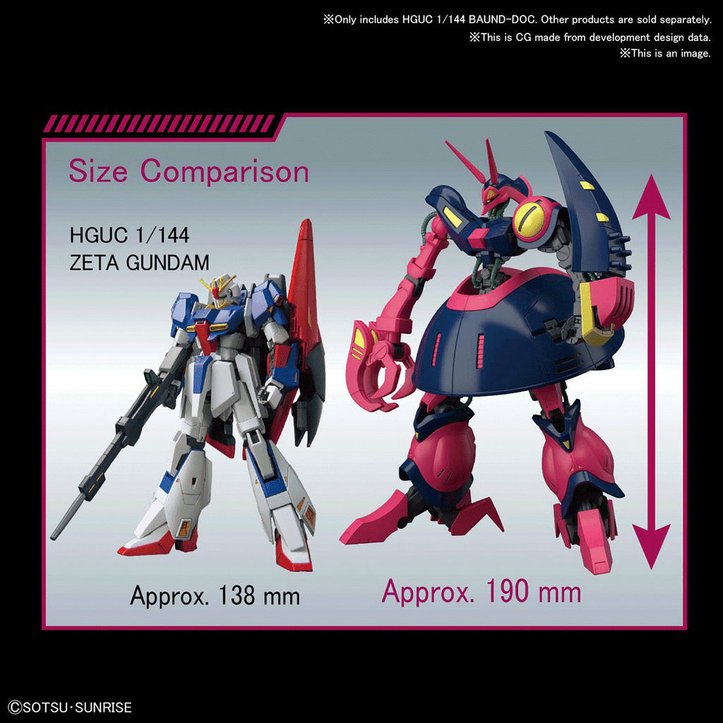Celebrating 35 years of Mobile Suit Zeta Gundam, Bandai Spirits presents the 1/144 scale Baund Doc model kit. Standing over 7 inches tall, Baund Doc can transform from mobile suit to mobile armor.
