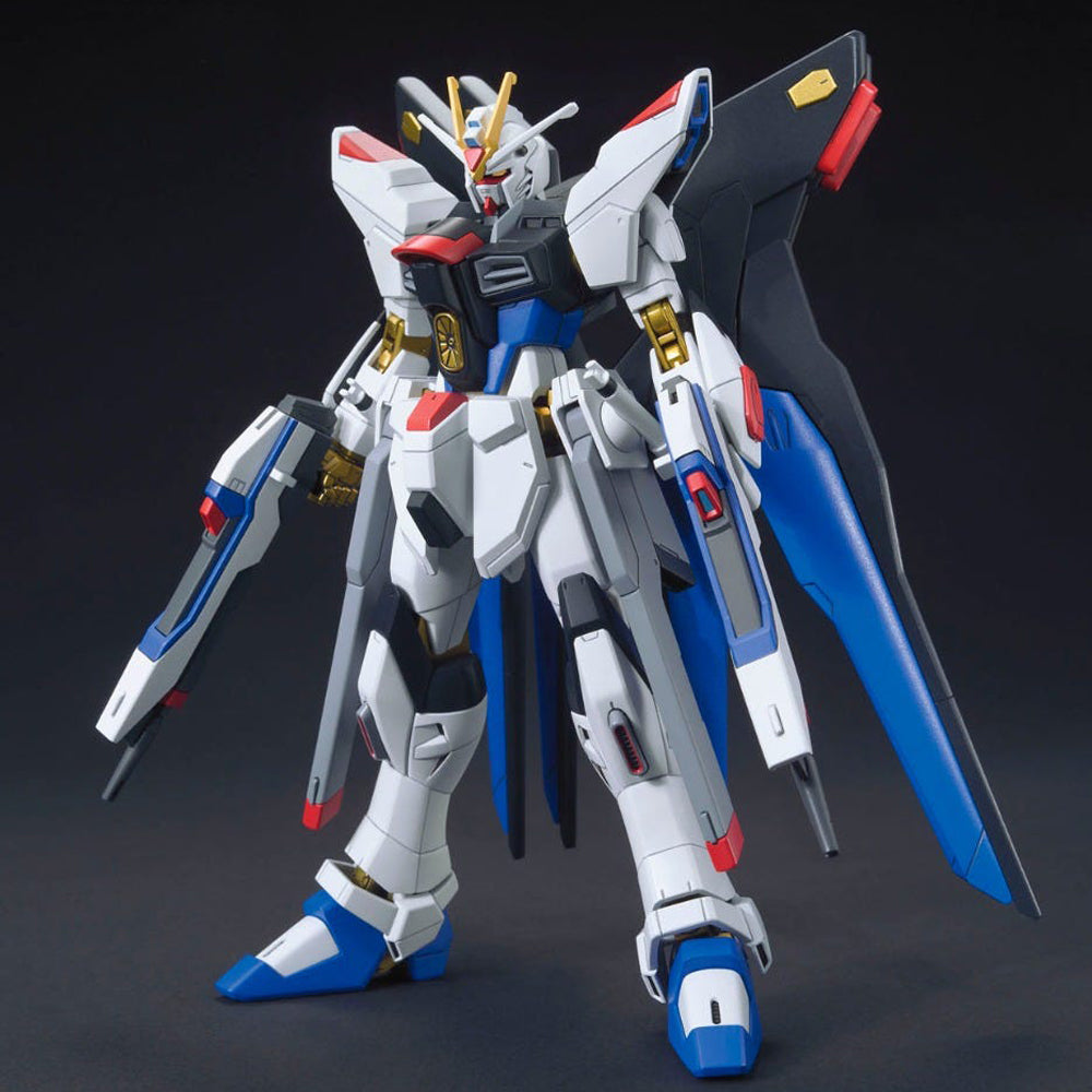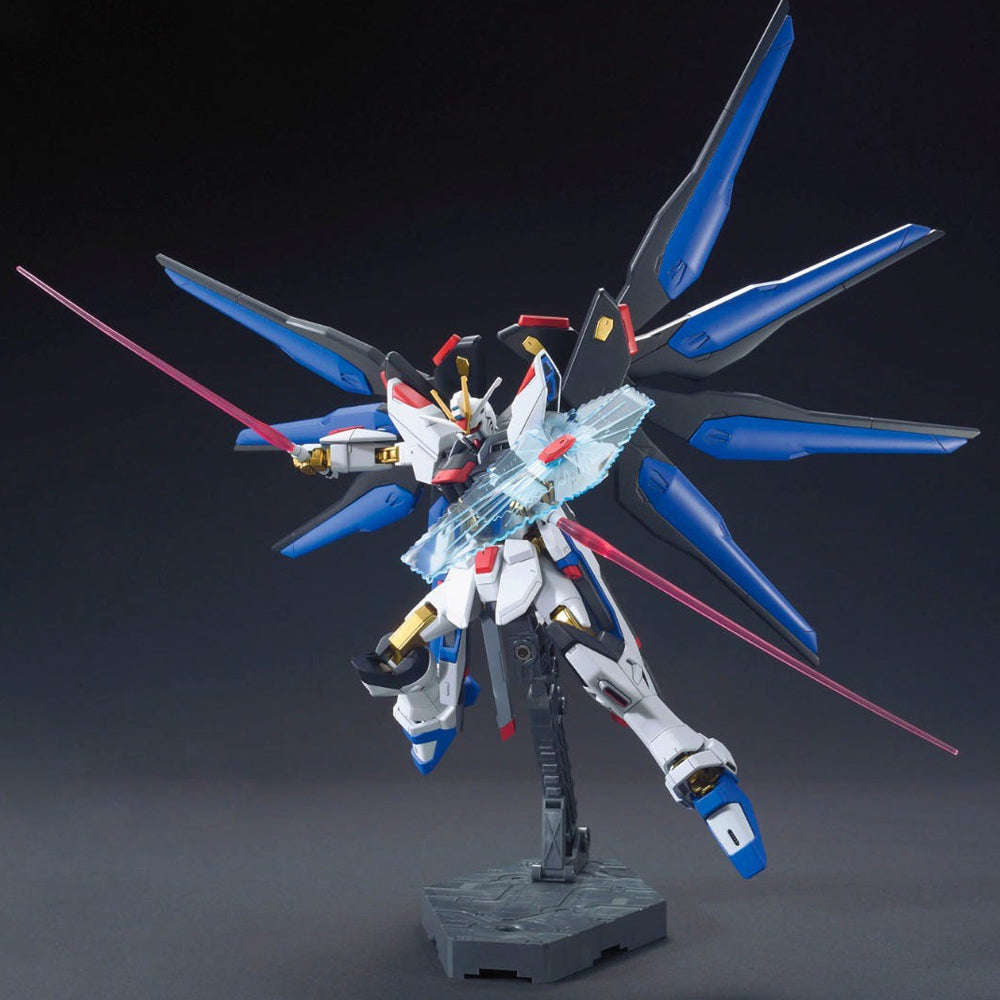 An updated design of the Strike Freedom from "Gundam Seed Destiny" recreated with new proportion and part separation technology. Includes 2 beam rifles that can also combine, hip mounted rail guns that can fold back for storage, beam shield, and 2 beam sabers.
