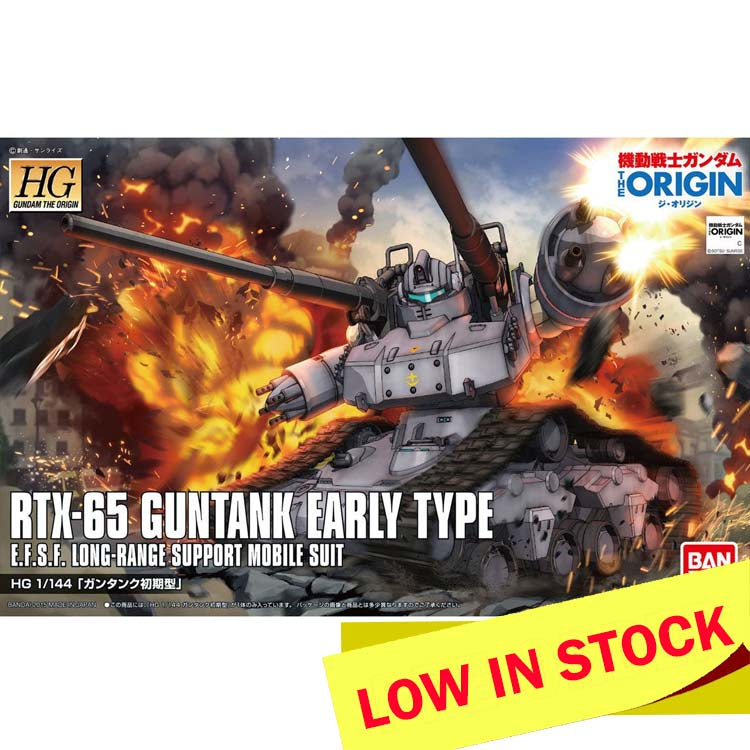 As seen in the OVA, "Gundam The Origin Blue Eyed Casval" the Gun Tank Early Type model has been faithfully replicated as a 1/144 HG model kit featuring extraordinary detail. Dampers on the massive cannons move with the angle position of the turret, and caterpillar tracks can be adjusted like a real tank. Fine surface details including radiator fins and tank hatch that can be shown open through part swapping are also included.