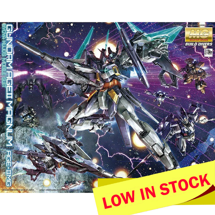 From Gundam Build Divers, Kyoya Kujo's Age II Magnum is now a Master Grade (MG) model kit! This kit features a new shoulder mold for increased strength and new hip locking mechanisms keep the legs stable in both MS and Phoenix Mode.