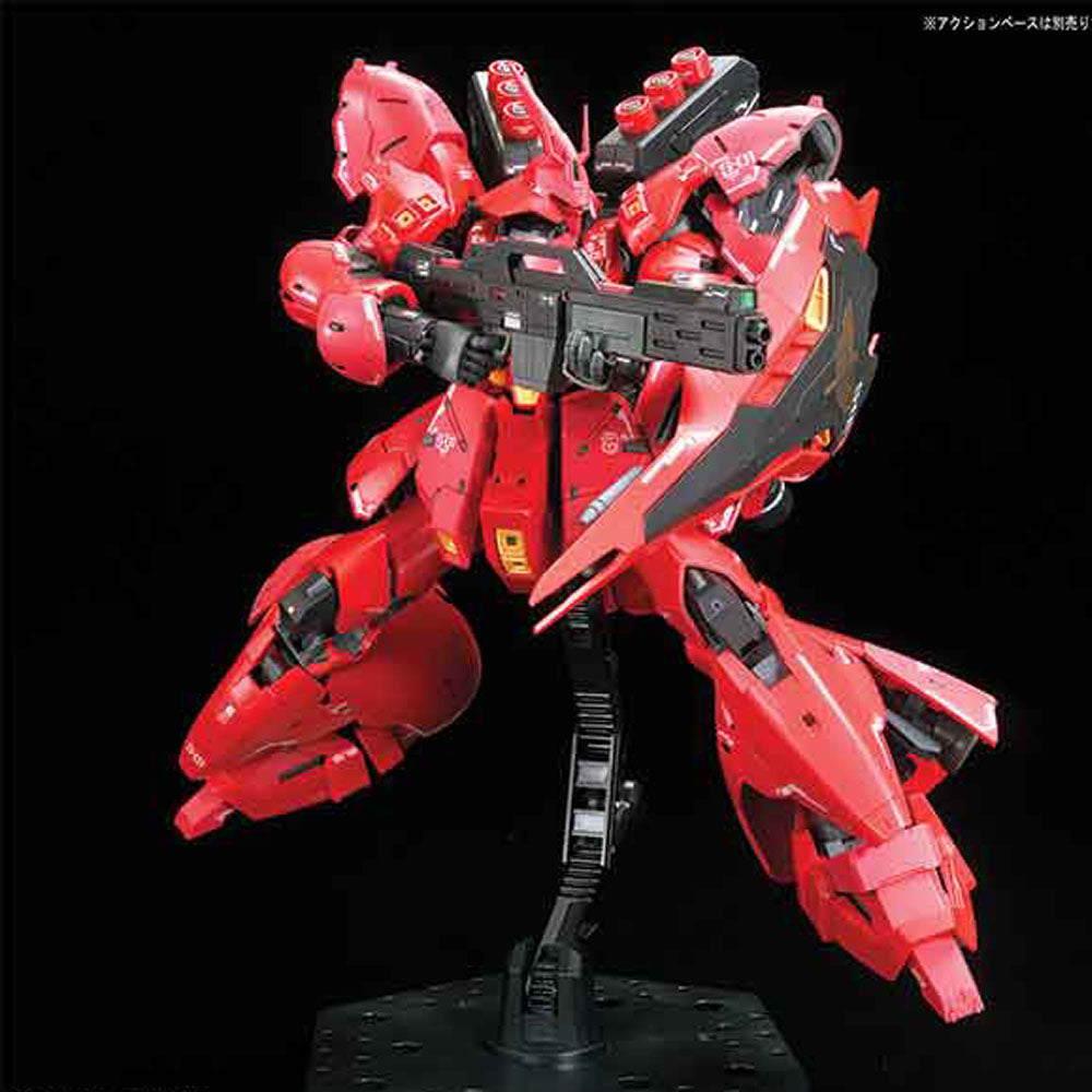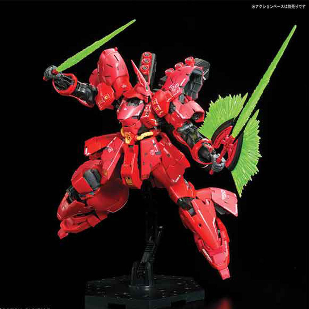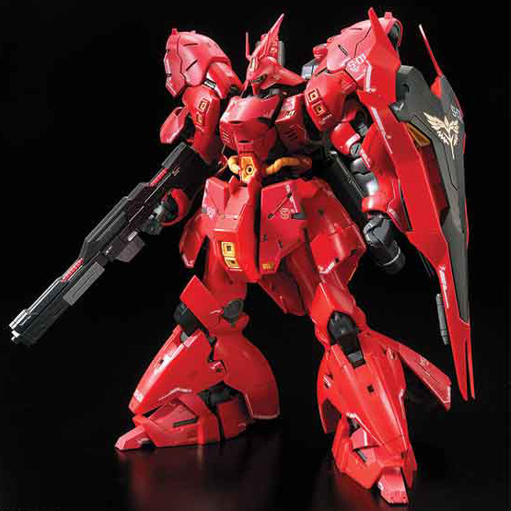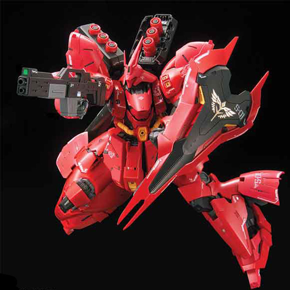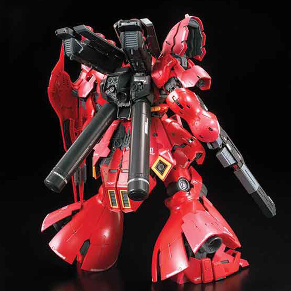 Sazabi, one of the most iconic custom made mobile suits of the Red Comet, Char Aznable, comes alive in the 1/144 Real Grade format! From the feature film "Mobile Suit Gundam Char's Counterattack" this large red mobile suit features complex detail as well as gimmicks that allow it to perform a wide variety of dynamic poses.