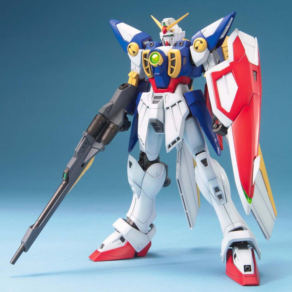 Presenting the TV version of the Wing Gundam with its full transformation gimmick recreated in the Master Grade line. Features swappable hands for holding buster rifle and beam saber. Shield opens just like the animation.