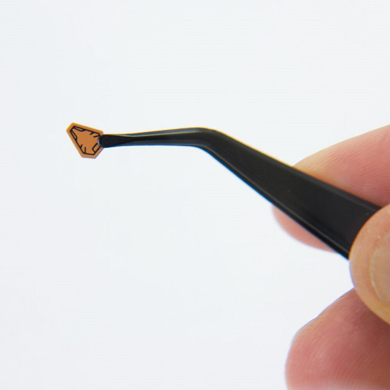 Tweezers designed for gripping thin and soft materials like stickers. The tips are flat and structured to grip parts with a "surface hold," allowing you to handle stickers and decals without damaging them.