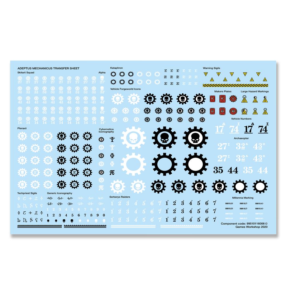 This set also includes 1x Adeptus Mechanicus Transfer Sheet containing 320 high-quality waterslide transfers for you to use to decorate your models.