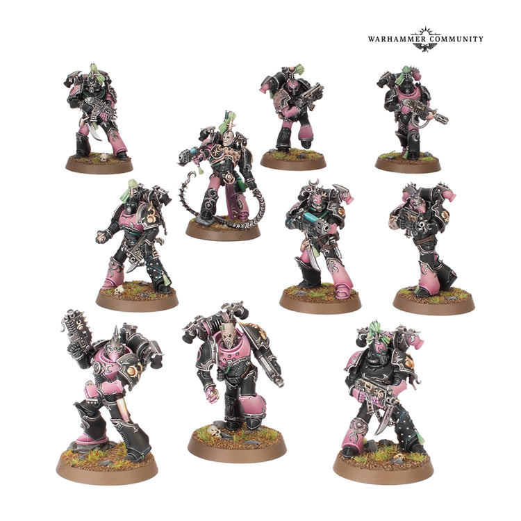 Tormentors go to war clad in garish power armour, clutching over-ornamented boltguns. They form the core of many Emperor’s Children warbands. Consumed by ego and desire, Tormentors are aggressive front-line troops who prioritise aggression and speed, always seeking new and greater experiences, and revelling in the gory deaths they inflict upon their enemies.