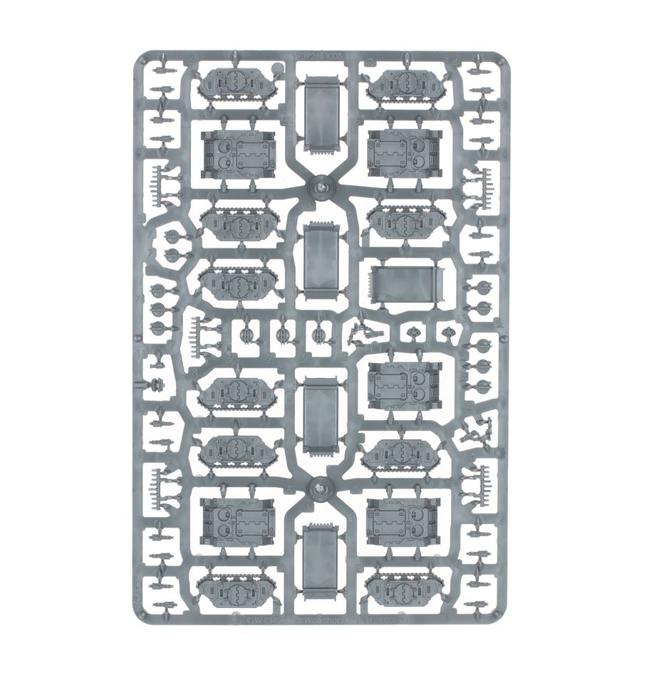 This multipart plastic kit builds 10 epic scale Legiones Astartes Rhinos, rugged transports that carry Space Marine infantry across the battlefields of Legions Imperialis. Each comes with pintle-mounted twin-linked bolters as standard, and the kit includes two pintle-mounted havoc launchers and four multi-meltas to provide greater fire support. You’ll also find cosmetic build options to help customise your vehicles, including dozer blades, hunter-killer missiles, and split or paired twin-linked bolters.