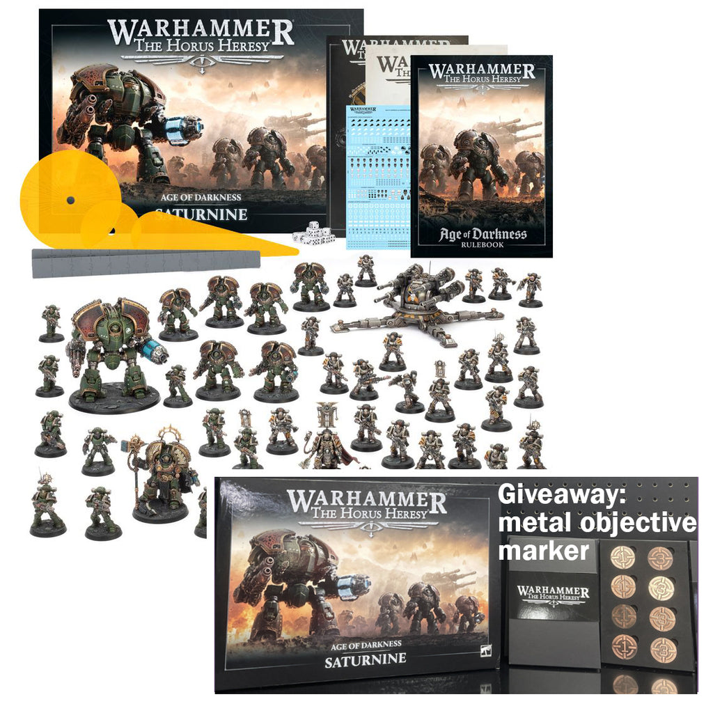 The Warhammer: The Horus Heresy – Age of Darkness Rulebook is available separately. The miniatures in this boxed set will be available separately at a later date.